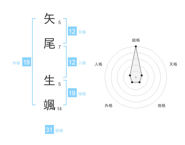 矢尾 生颯さんの総格は31画の5点!