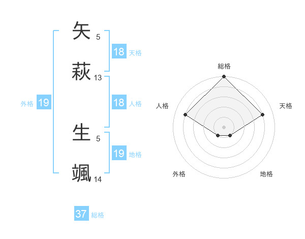 矢萩 生颯さんの総格は37画の5点!