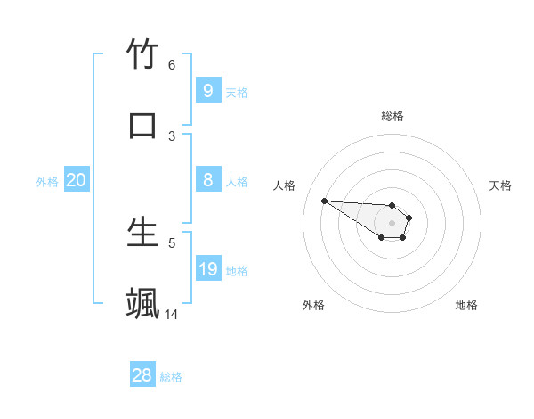 竹口 生颯さんを姓名の画数から五運を鑑定