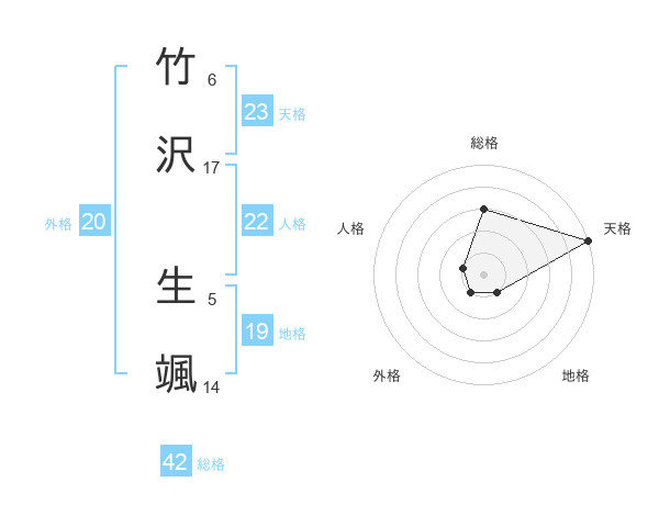 竹沢 生颯さんの天格は23画の5点!