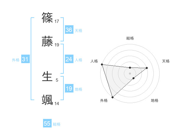 篠藤 生颯さんを姓名の画数から五運を鑑定