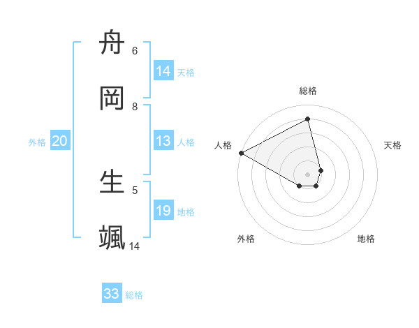 舟岡 生颯さんの総格は33画の4点!