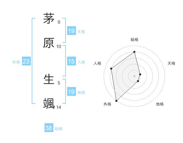 茅原 生颯さんを姓名の画数から五運を鑑定
