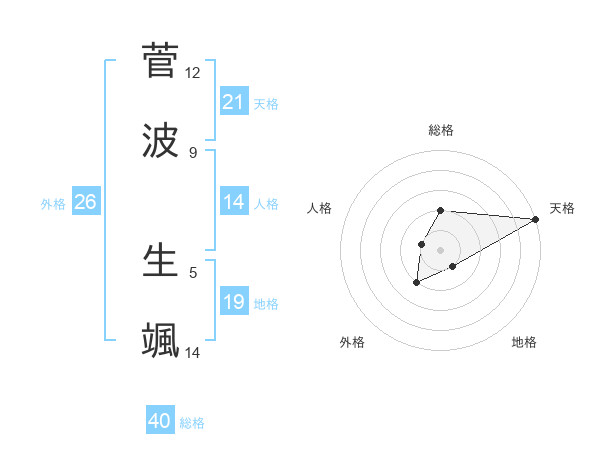 菅波 生颯さんを姓名の画数から五運を鑑定