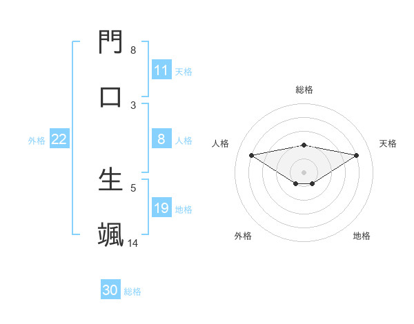 門口 生颯さんの外格は22画の1点!