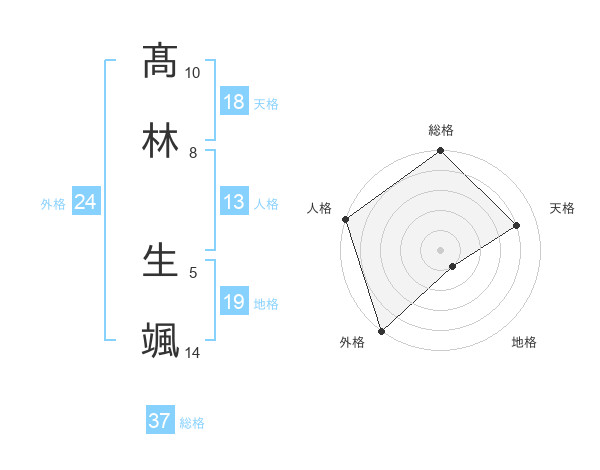 髙林 生颯さんの天格は18画の4点!