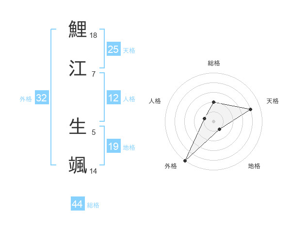 鯉江 生颯さんの総格は44画の2点!