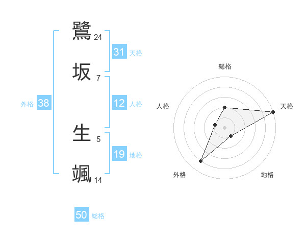 鷺坂 生颯さんの総格は50画の2点!