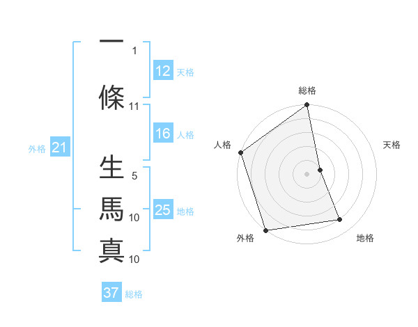 一條 生馬真さんを姓名の画数から五運を鑑定