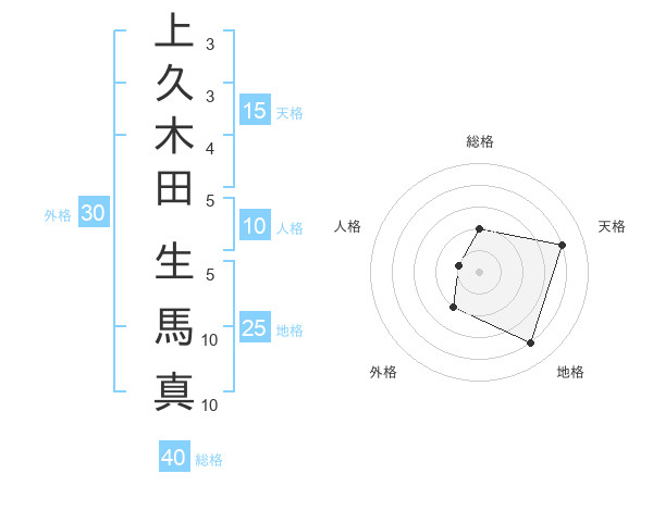 上久木田 生馬真さんの天格は15画の4点!