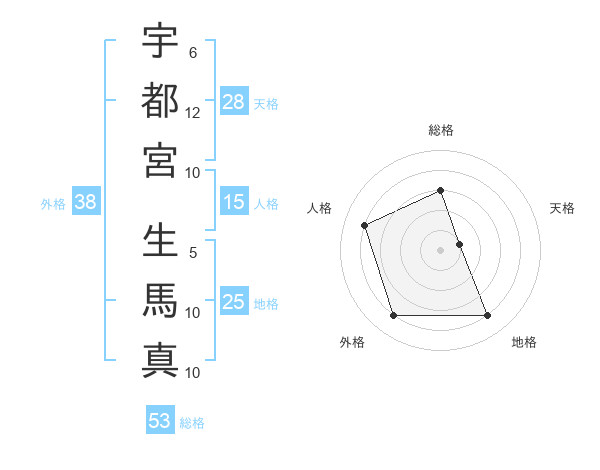 宇都宮 生馬真さんを姓名の画数から五運を鑑定