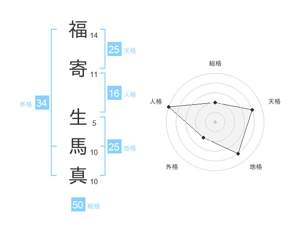 福寄 生馬真さんを姓名の画数から五運を鑑定