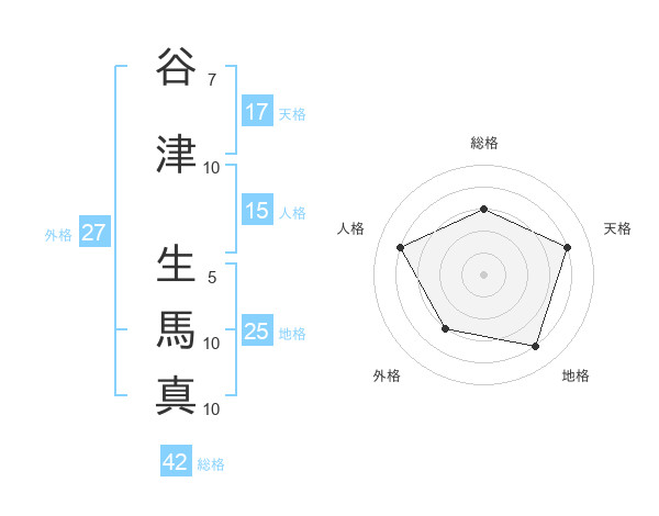 谷津 生馬真さんの総格は42画の3点!