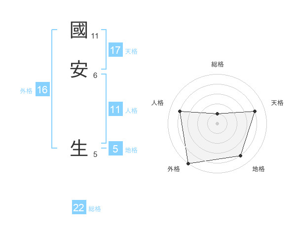 國安 生さんの総格は22画の1点!