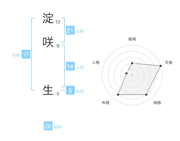 淀咲 生さんの天格は21画の5点!