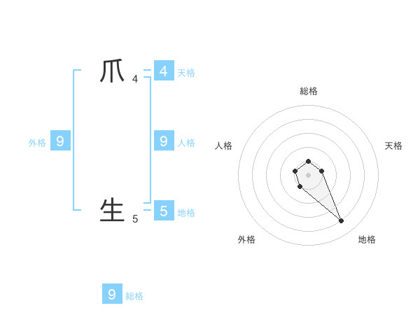 爪 生さんの総格は9画の1点!