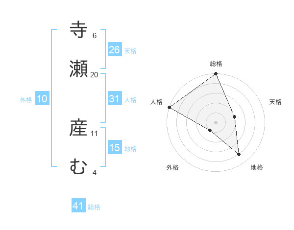 寺瀬 産むさんを姓名の画数から五運を鑑定