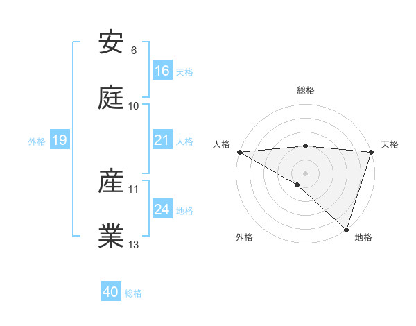 安庭 産業さんの総格は40画の2点!