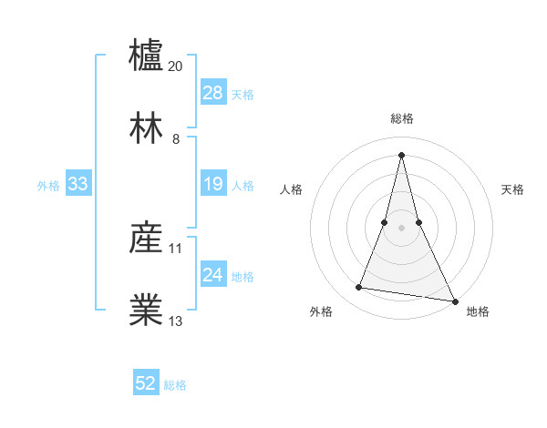 櫨林 産業さんの総格は52画の4点!