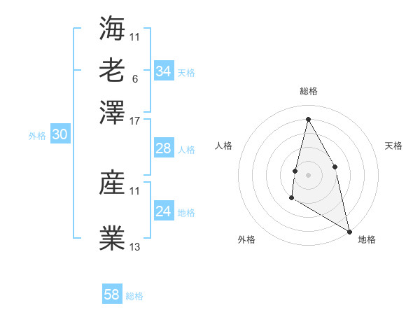 海老澤 産業さんを姓名の画数から五運を鑑定