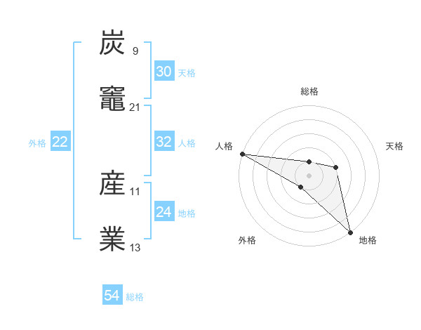 炭竈 産業さんの総格は54画の1点!