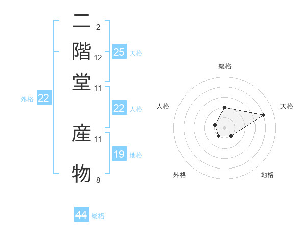 二階堂 産物さんを姓名の画数から五運を鑑定
