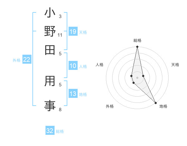 小野田 用事さんの総格は32画の5点!