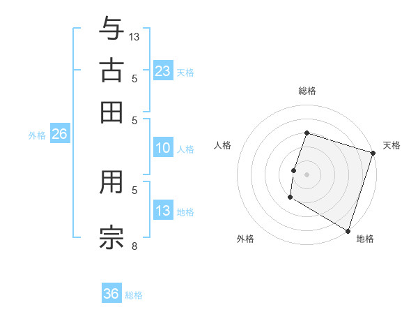 与古田 用宗さんを姓名の画数から五運を鑑定