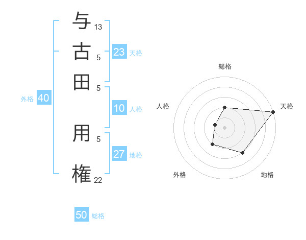 与古田 用権さんの総格は50画の2点!