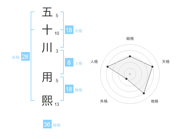 五十川 用煕さんを姓名の画数から五運を鑑定