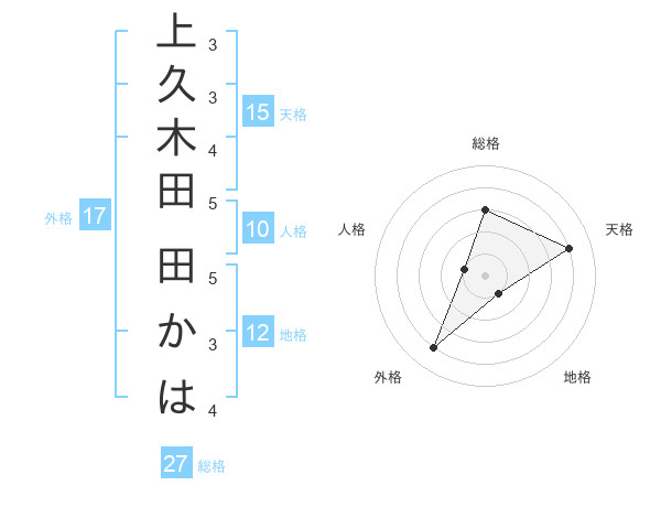 上久木田 田かはさんの総格は27画の3点!
