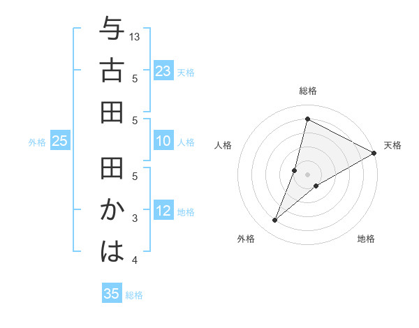 与古田 田かはさんを姓名の画数から五運を鑑定