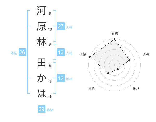 河原林 田かはさんを姓名の画数から五運を鑑定