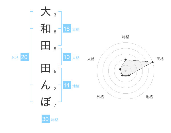 大和田 田んぼさんを姓名の画数から五運を鑑定