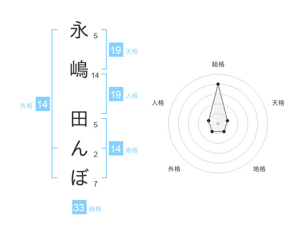 永嶋 田んぼさんを姓名の画数から五運を鑑定
