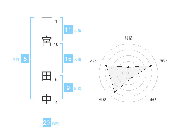 一宮 田中さんの総格は20画の1点!