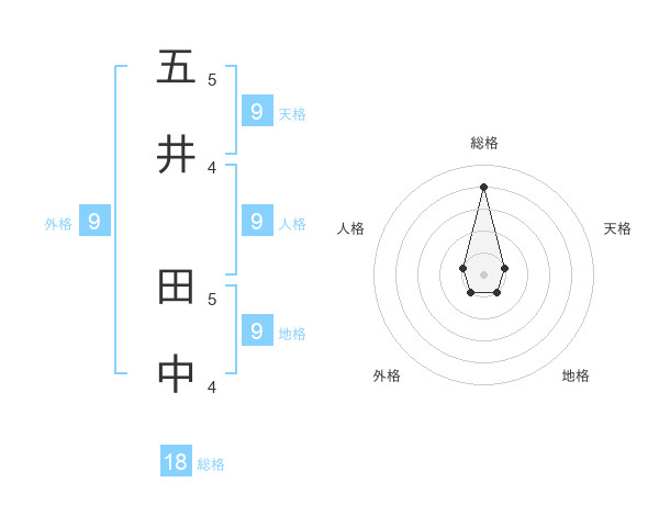 五井 田中さんの総格は18画の4点!