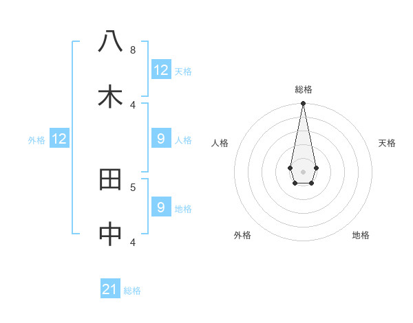 八木 田中さんの総格は21画の5点!
