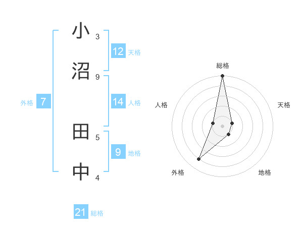 小沼 田中さんの総格は21画の5点!