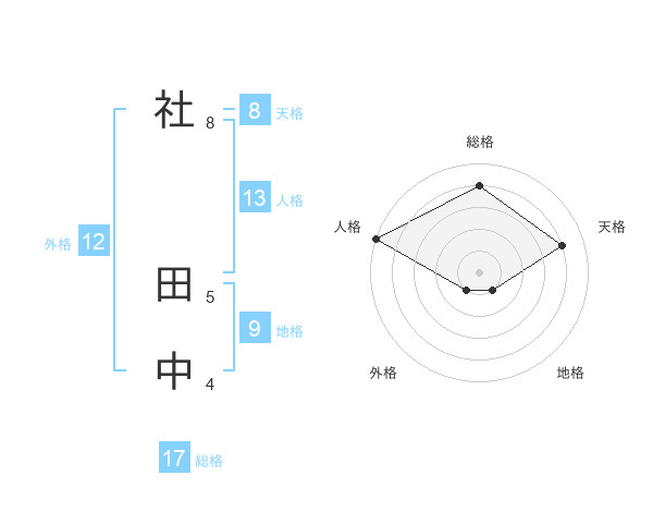 社 田中さんの総格は17画の4点!