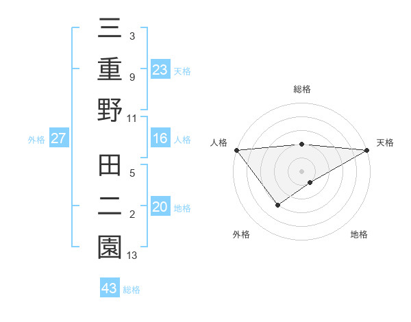 三重野 田二園さんを姓名の画数から五運を鑑定