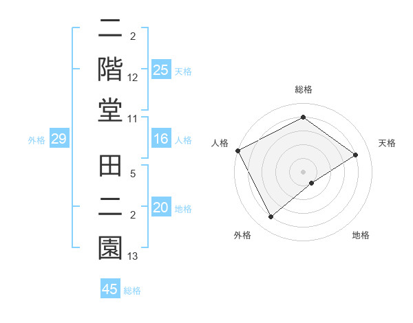 二階堂 田二園さんを姓名の画数から五運を鑑定