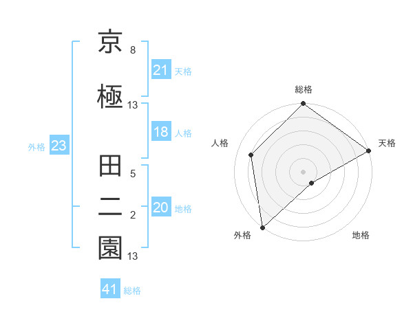 京極 田二園さんの総格は41画の5点!
