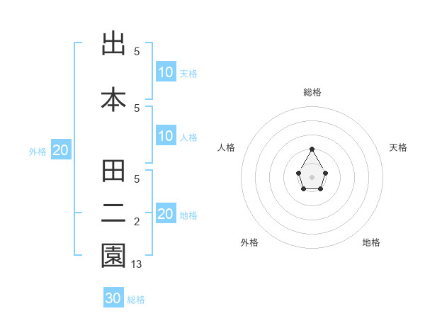 出本 田二園さんの総格は30画の2点!