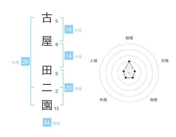 古屋 田二園さんの地格は20画の1点!