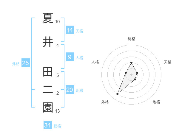 夏井 田二園さんを姓名の画数から五運を鑑定