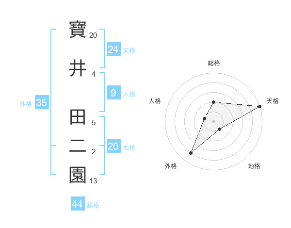 寶井 田二園さんの天格は24画の5点!