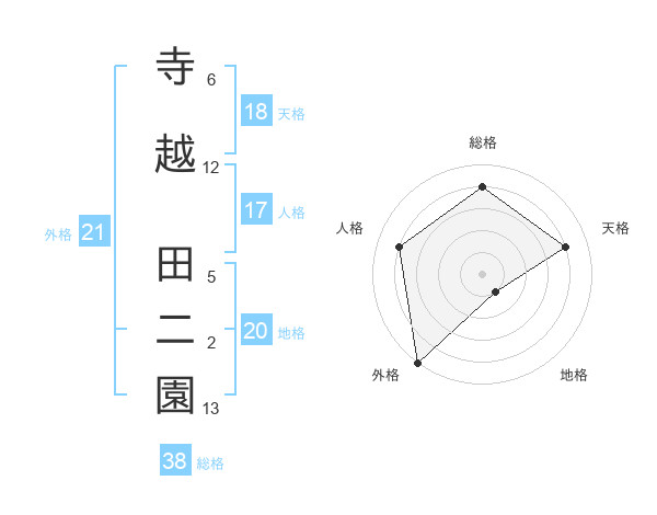 寺越 田二園さんを姓名の画数から五運を鑑定