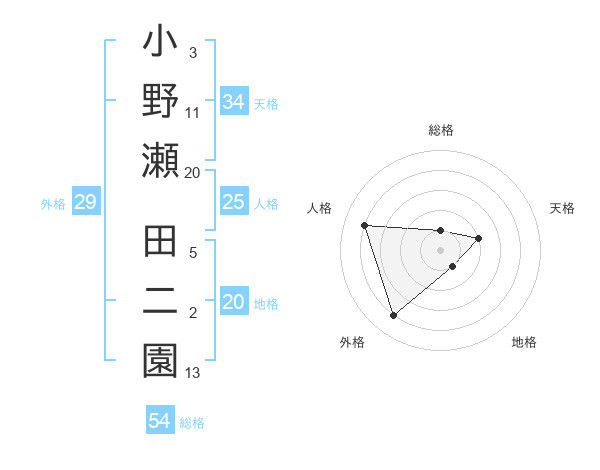 小野瀬 田二園さんの総格は54画の1点