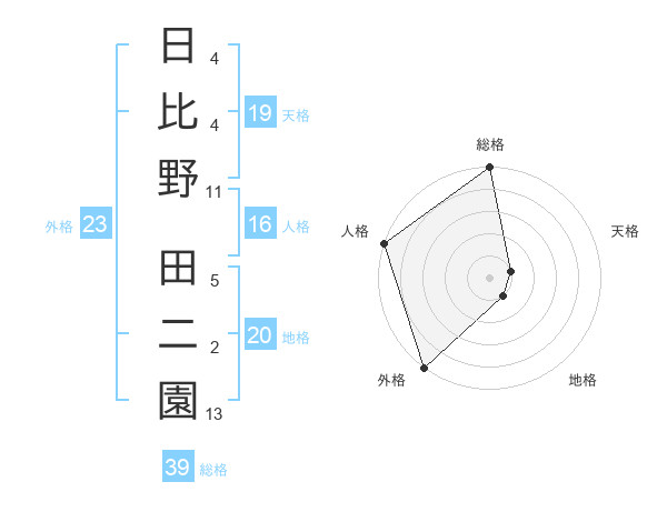 日比野 田二園さんを姓名の画数から五運を鑑定